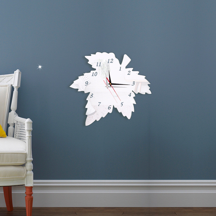 Horloge murale créative en acrylique, feuille d'érable, décoration pastorale, horloge silencieuse pour chambre à coucher, DIY bricolage