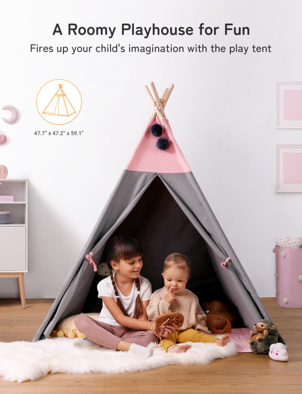 [HIGH QUALITY KIDS TENT ]This product is EN71 certified, besrey is committed to giving every child a healthy and happy childhood. 100% double cotton canvas and sturdy natural material (2.5cm) pine wood. Size: 120*120*155cm. The perfect size for an apartment or bedroom.