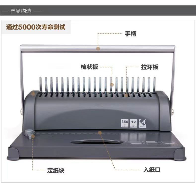 peigne-type 21 trous clip-bande reliure machine tablier papier document contrat appel d'offres couverture poinçonneuse