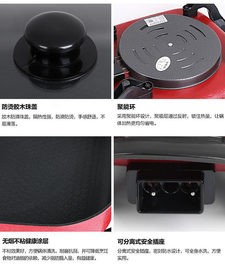 Double bonheur multifonctionnel ménage antiadhésif carré pot dortoir électrique marmite coréen barbecue électrique