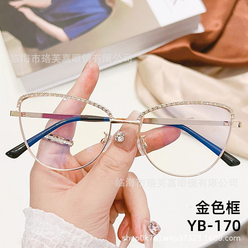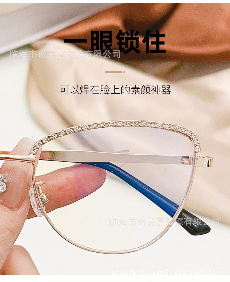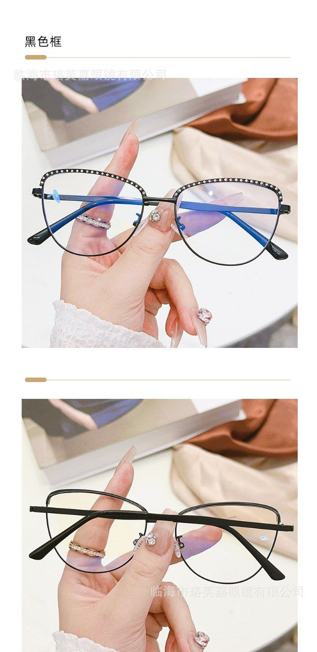 Le nouveau miroir plat en métal anti-lumière bleue de célébrité d'Internet à pois en diamant œil de chat peut être associé à des lunettes amincissantes à grande monture unie pour myopie