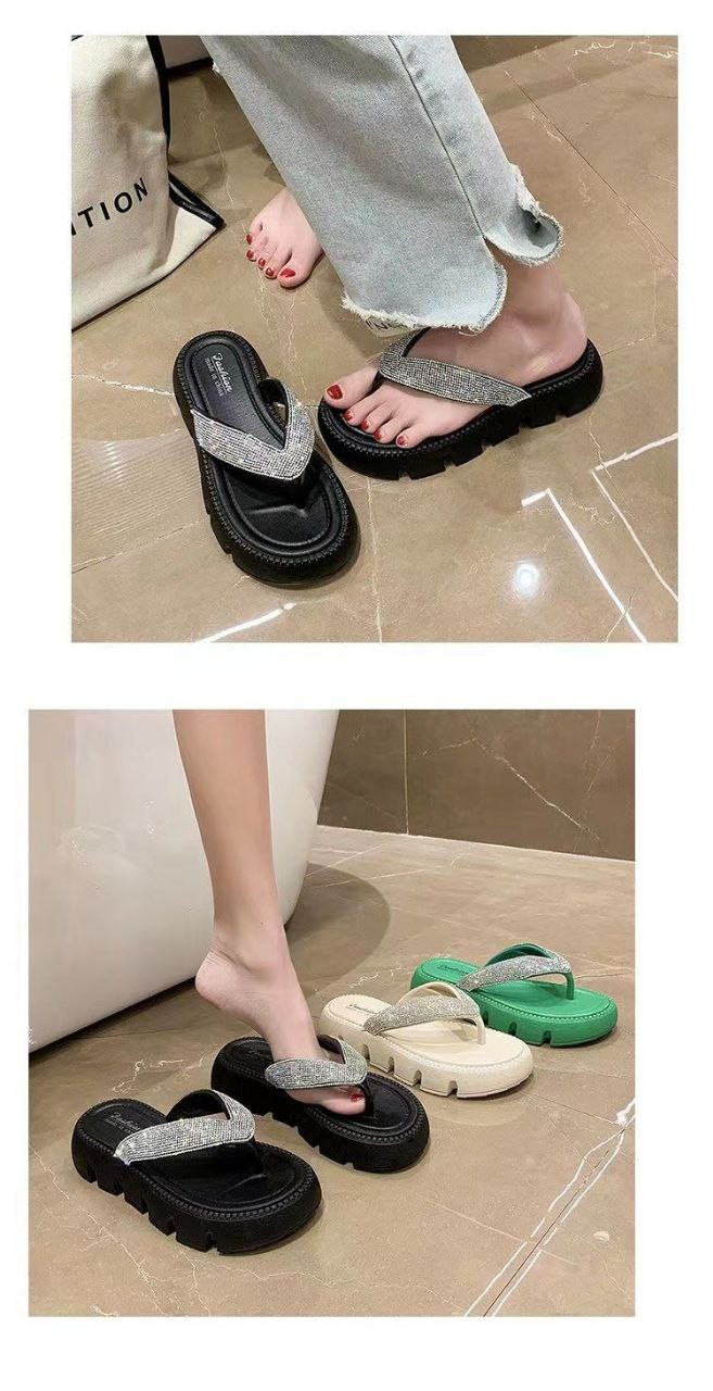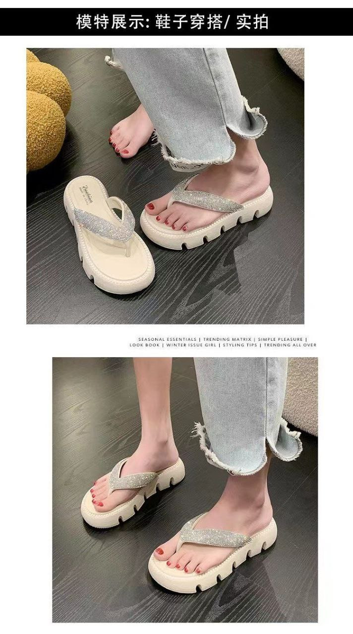 nouvelles tongs d'été style coréen tongs en strass plage à semelles épaisses à semelles souples sandales décontractées pour femmes