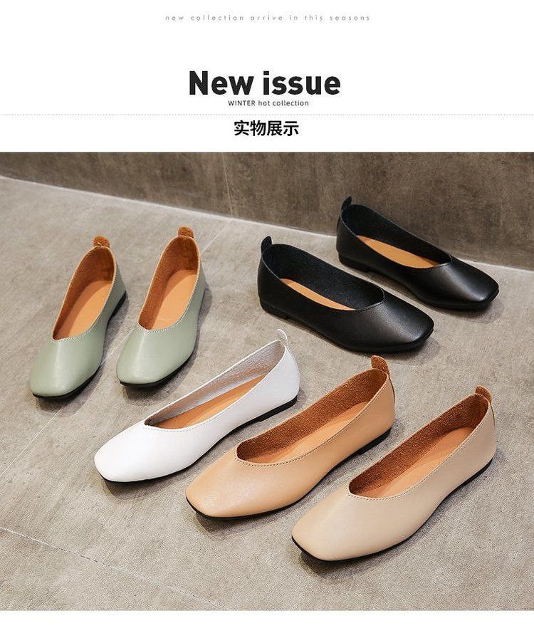 Chaussures simples pour femmes, nouveau style chaussures en cuir souple chaussures plates rétro pour femmes bout carré à bouche peu profonde