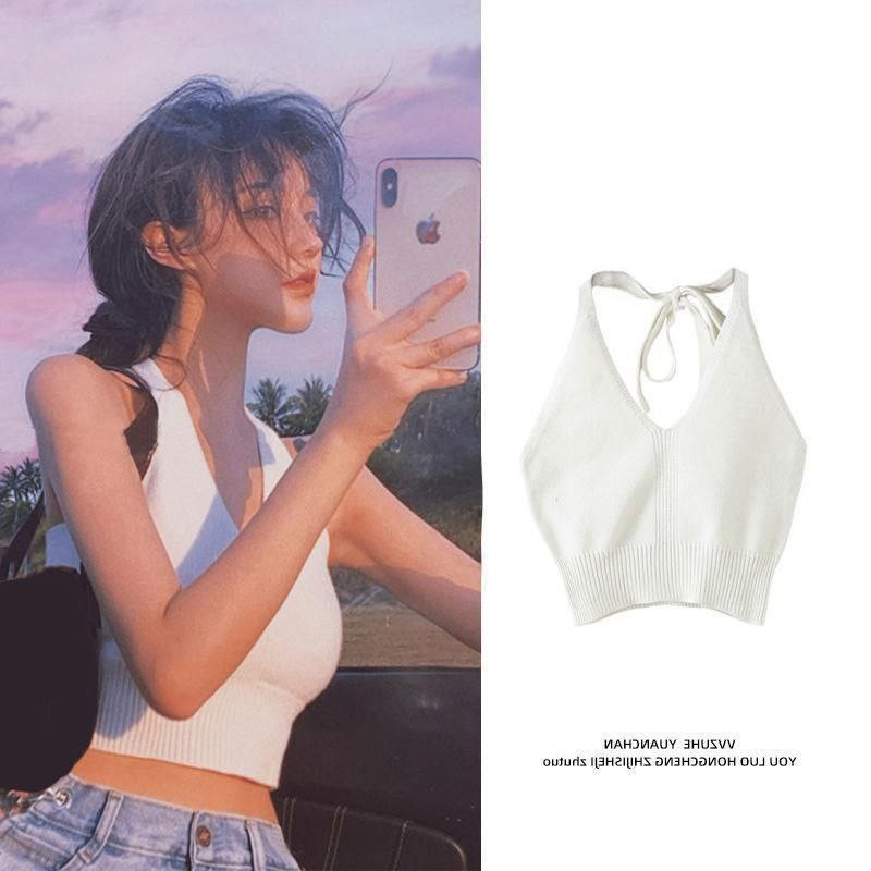 Haut tricoté à couche intérieure de niche pour femmes, bretelles à col licou, pour vêtements d'été, gilet court à bretelles blanches