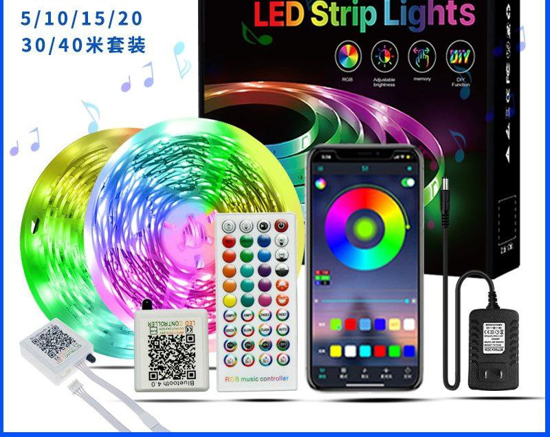 Ensemble de bandes lumineuses RVB, atmosphère musicale Bluetooth à 40 touches, bande lumineuse douce 3535, bande lumineuse linéaire LED autocollante