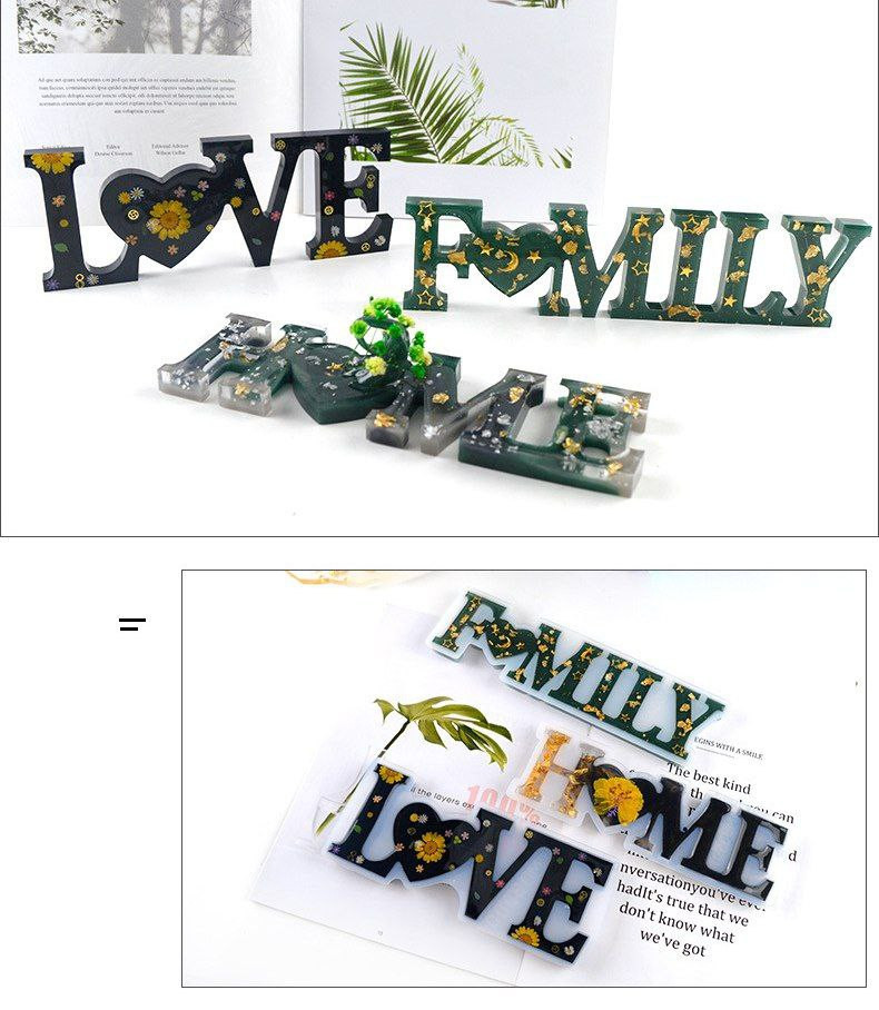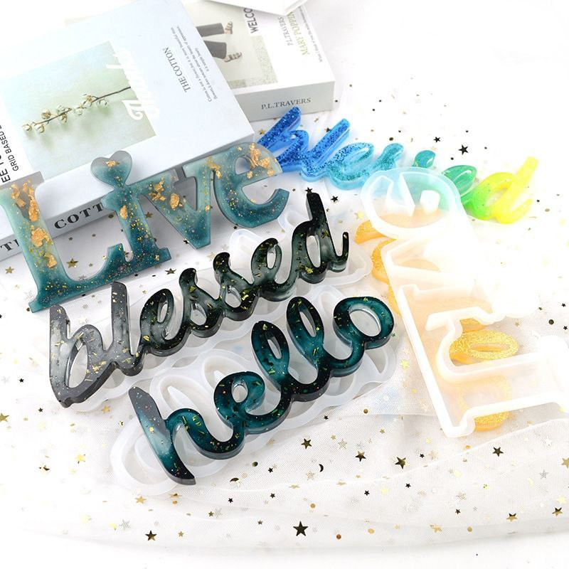 Moule à lettres, moule à colle, bijoux à bricoler soi-même, ornements en résine, ensemble d'outils abrasifs anglais, moule en silicone pour mots d'amour