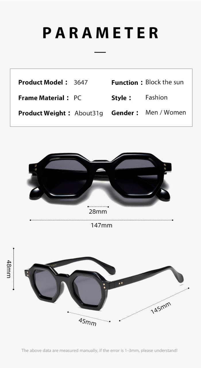 3467pc lunettes de soleil polygonales à ongles de riz tendance rétro européenne et américaine protection UV UV400