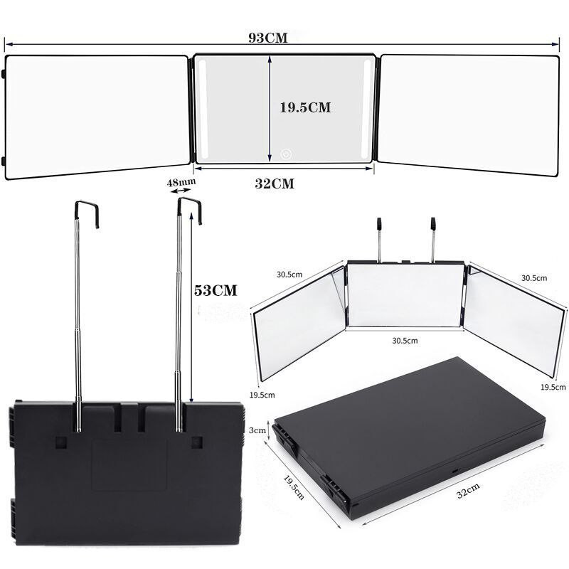 Miroir à trois voies suspendu, coupe de cheveux automatique, rétroviseur pliant, miroir de coupe de cheveux arrière rétractable suspendu pour salon de coiffure