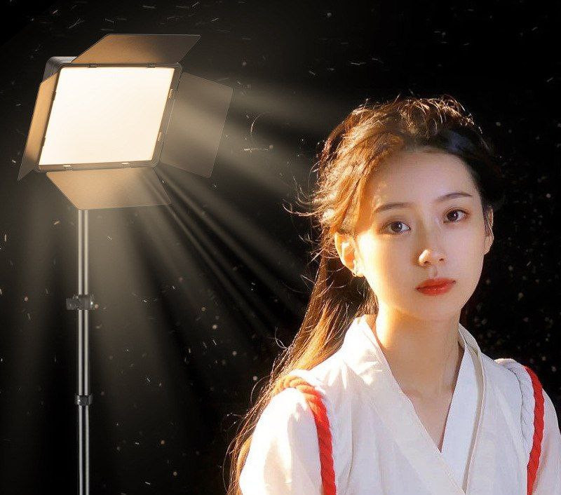 Lumière plate carrée à 4 feuilles + trepied de 2m1 de remplissage LED de 10 pouces, beauté, diffusion en direct, lumière de remplissage, équipement de photographie, éclairage vidéo