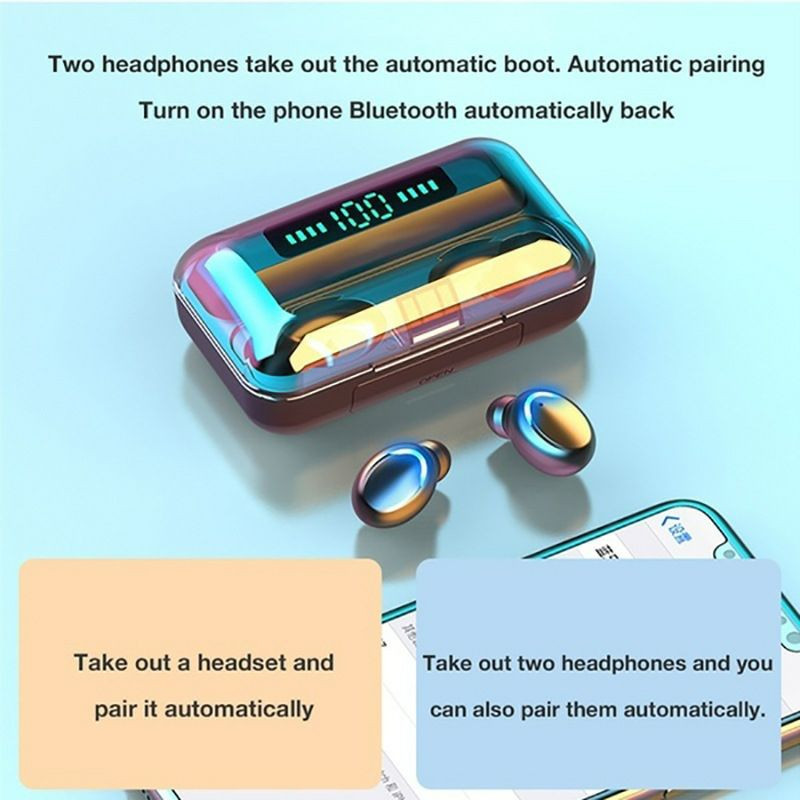 Les casques écouteurs Airpod Bluetooth sans fil populaires F9-5C avec étui de chargement sans fil, grande batterie Double-Earg F9 Affichage numérique Digital Affichage de sports,