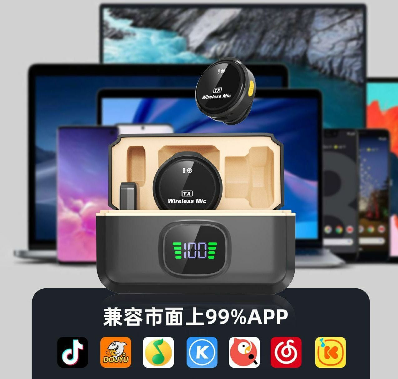 Microphone Cravate Sans Fil Professionnel Cross-Border Q8 avec cas de chargement un à deux téléphones mobiles, diffusée en direct avec Smartphone