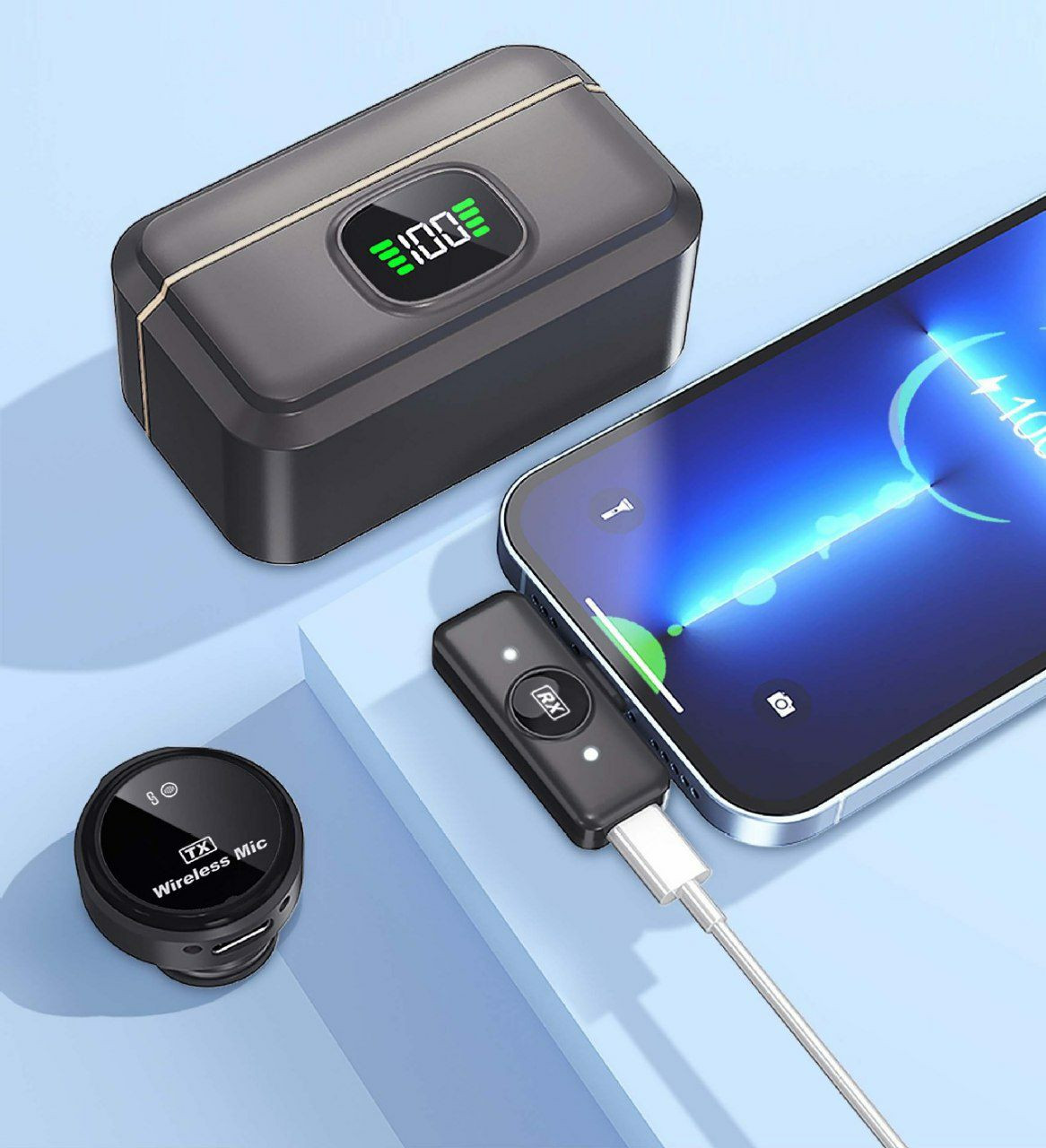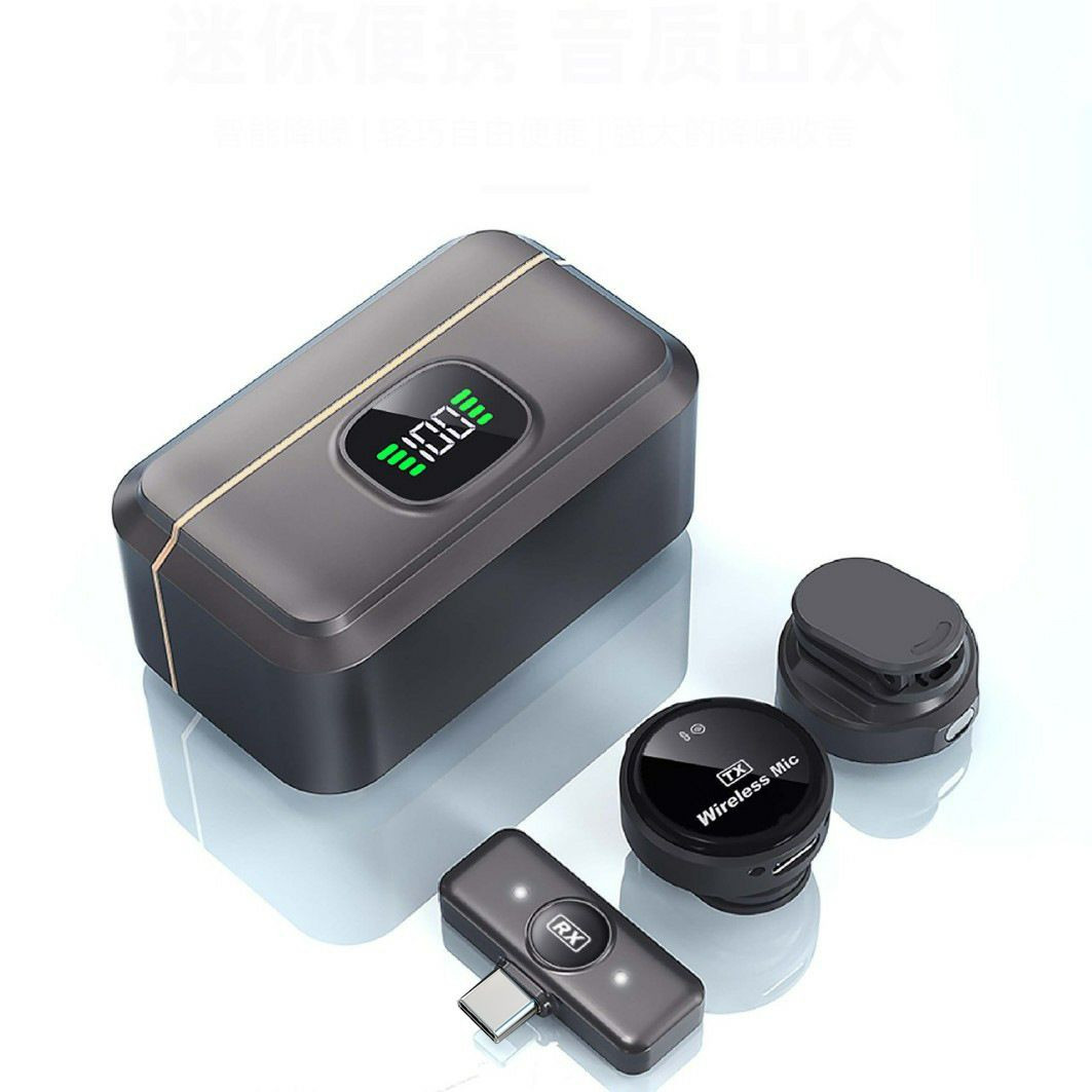 Microphone Cravate Sans Fil Professionnel Cross-Border Q8 avec cas de chargement un à deux téléphones mobiles, diffusée en direct avec  Smartphone. Boîtier De Charge Numérique Pour Enregistrement Vidéo/Audio, Micro Cravate Avec Aimant Pour Interview/Vlog/Enseignement
