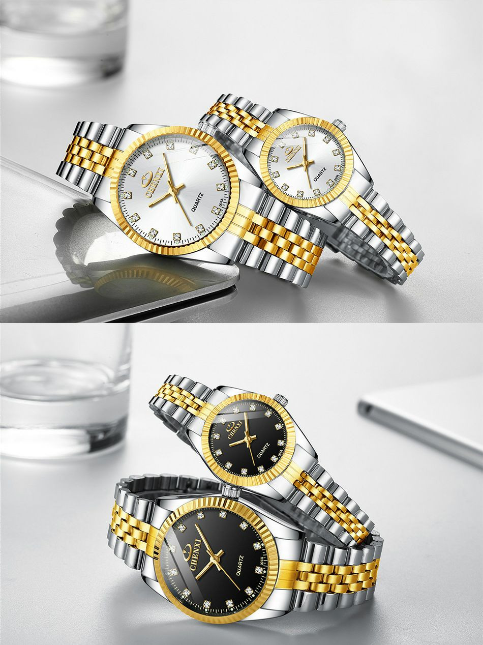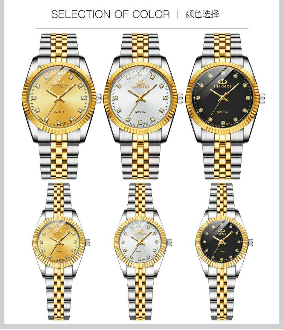 CHENXI CX-004A argent-or montre pour hommes et femmes (couple) nouveau Style bracelet en acier inoxydable étanche mouvement à Quartz hommes d'affaires montre à main