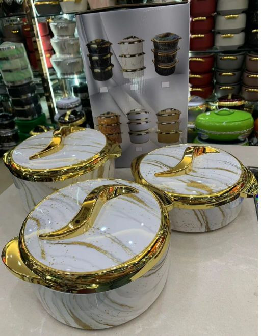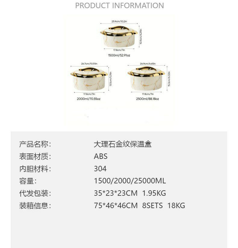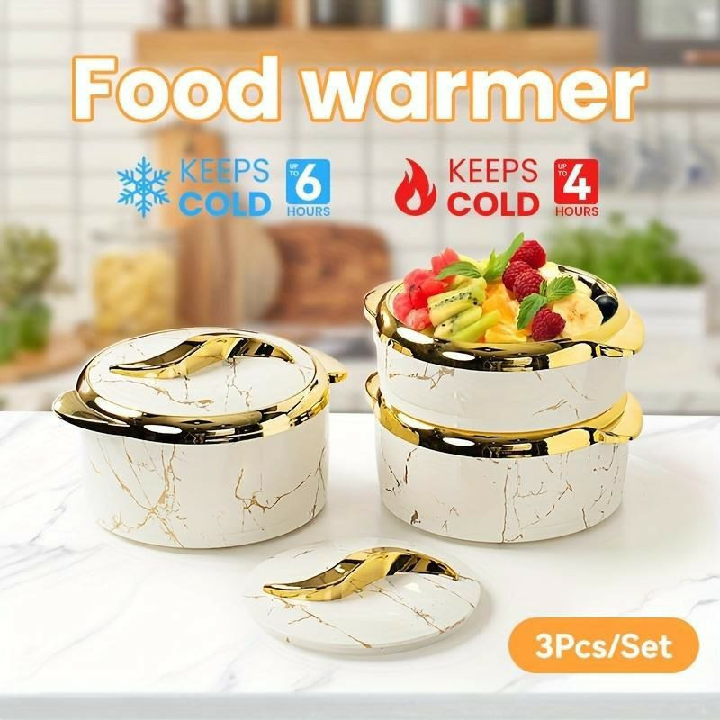 Boîte thermos contenant des aliments chauds et froids ensemble de trois pièces boîte thermos en plastique en acier inoxydable marbre simple