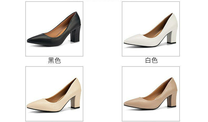 Chaussures simples élégantes classes et tendance pour femmes avec talons épais et tempérament. Nouvelles chaussures de travail d'automne à bout pointu avec bouche peu profonde et talons hauts individuels de style coréen.