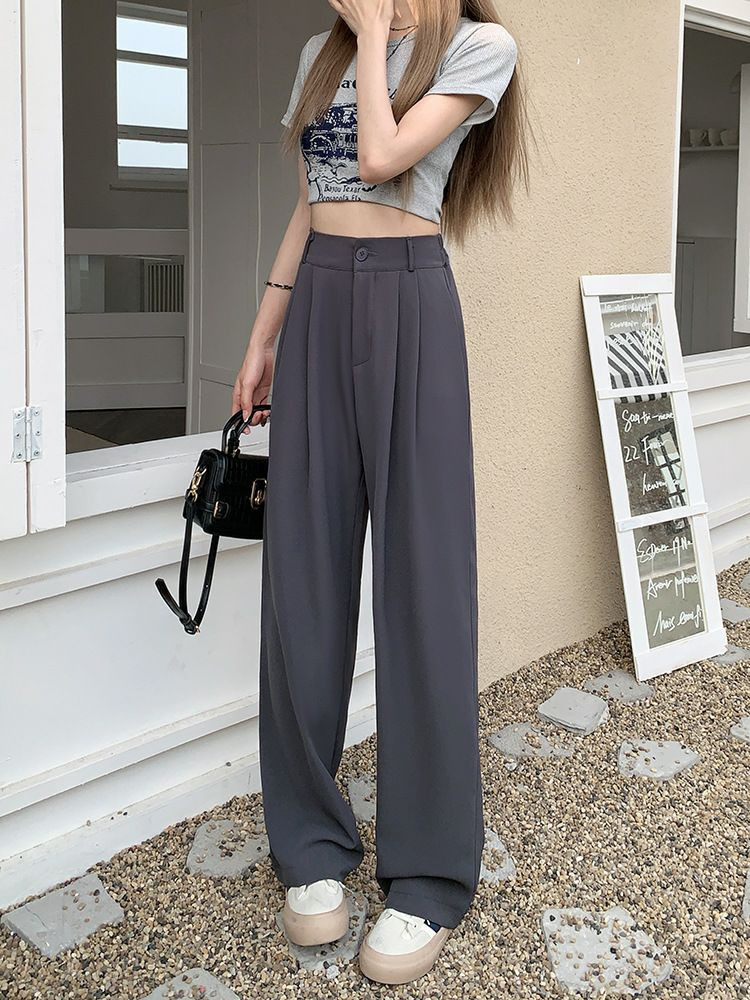 Pantalons élégant de costume avec taille élastique, pantalons décontractés slim, pantalons larges amples d'été, pantalons drapés taille haute