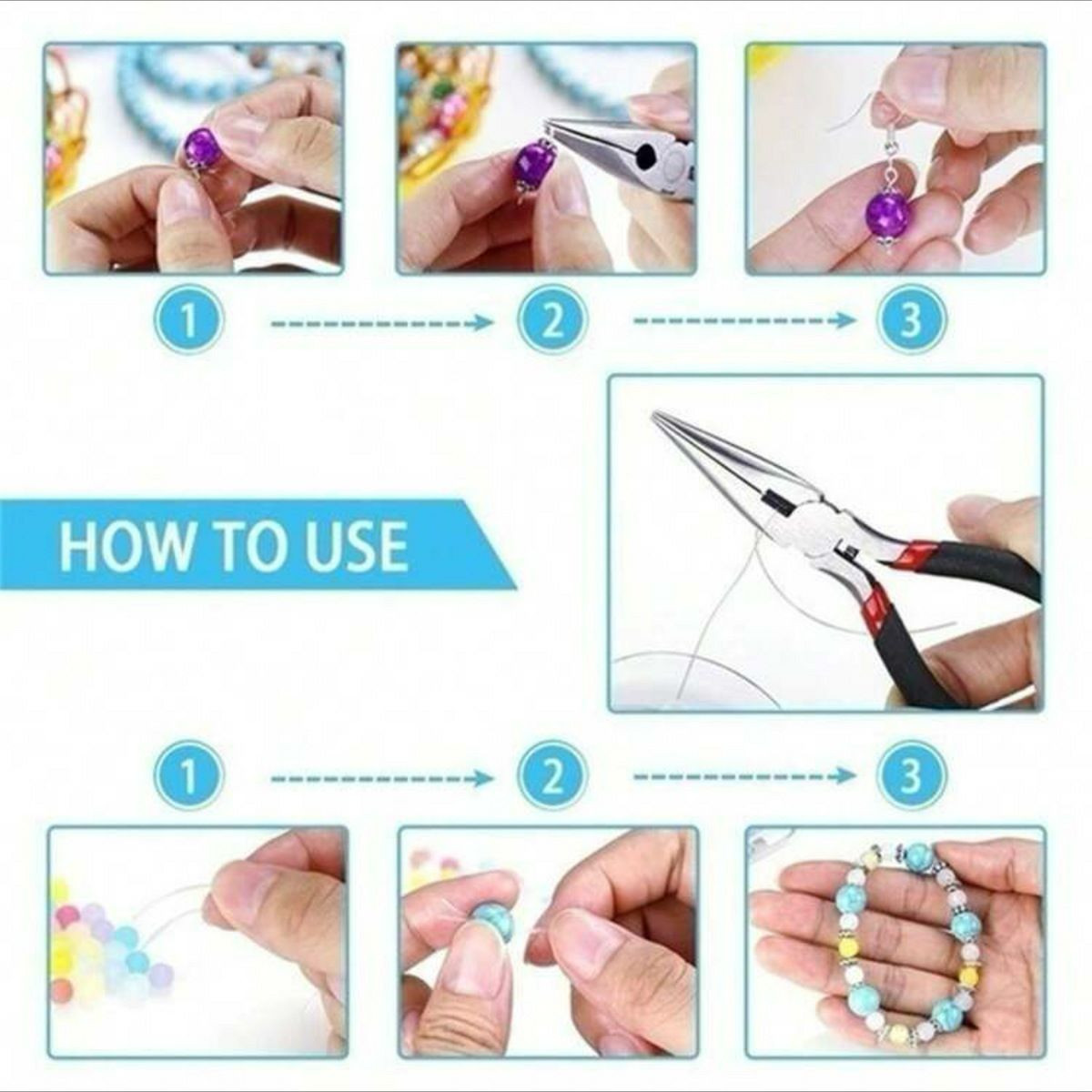 Contenu : Comprend des pinces à bec rond, des pinces à bec effilé, des coupe-fils et des pinces à épiler en acier inoxydable.