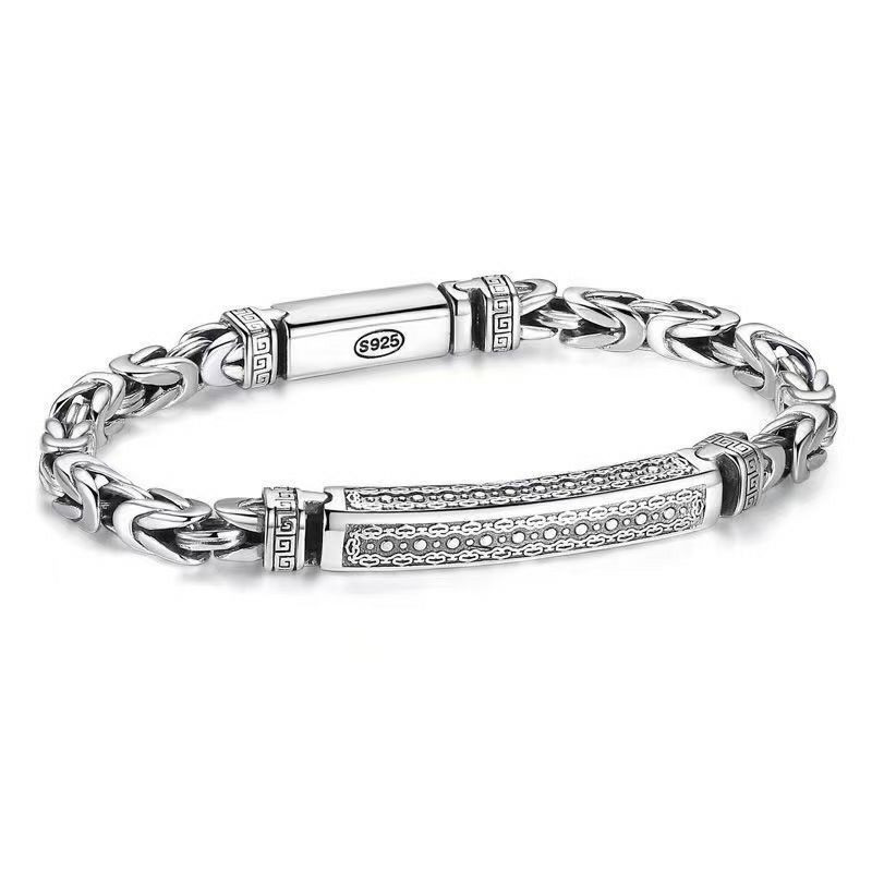 Bracelet pour hommes en argent sterling S925 avec un design de chaîne de maillons carrés et un fermoir décoratif