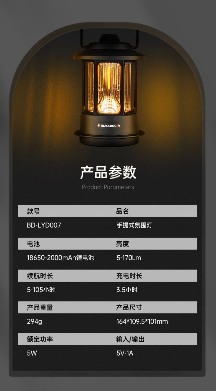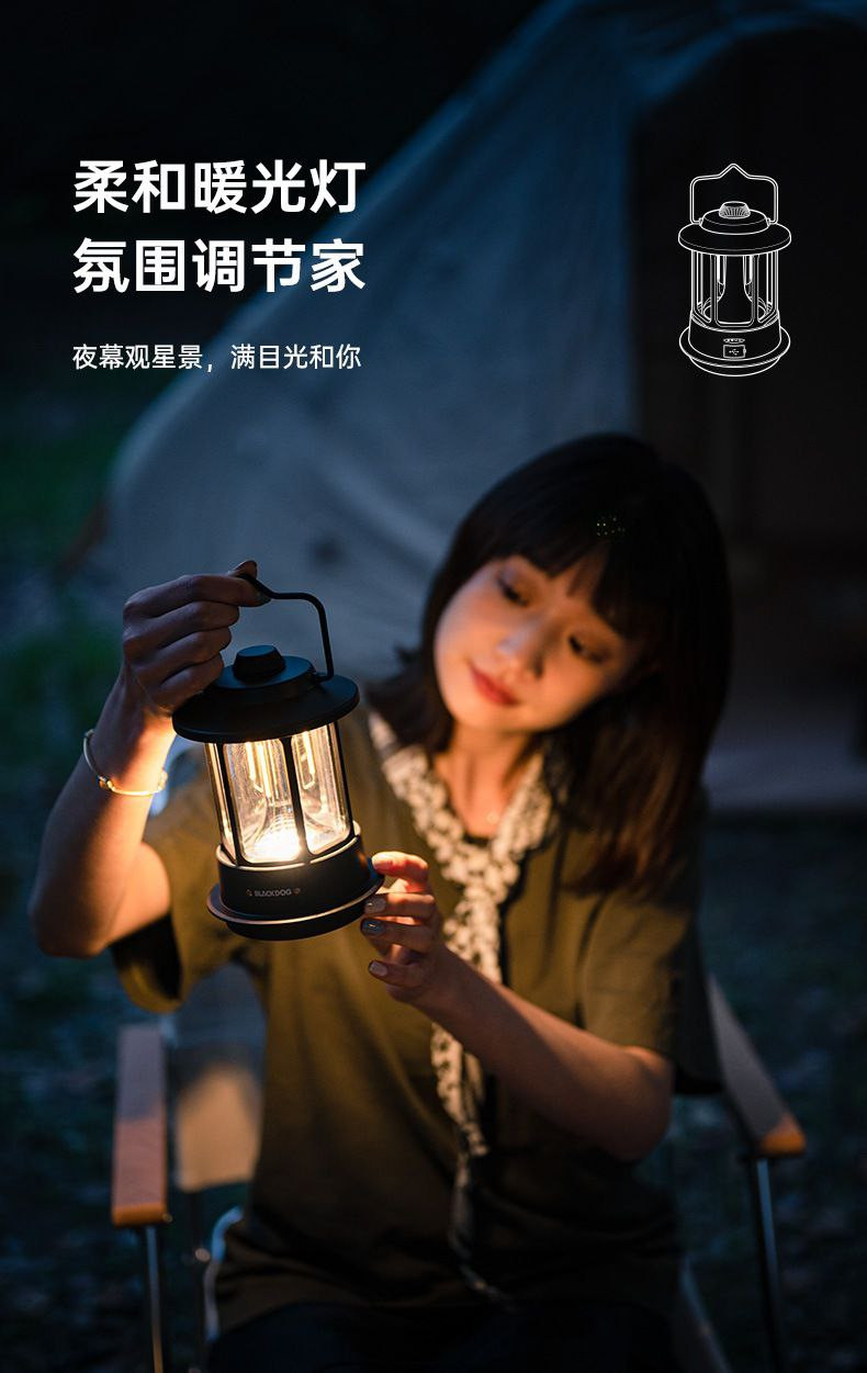 Blackdog lampe d'ambiance de camping en plein air lampe de camping portable lampe suspendue lampe de tente rétro rechargeable